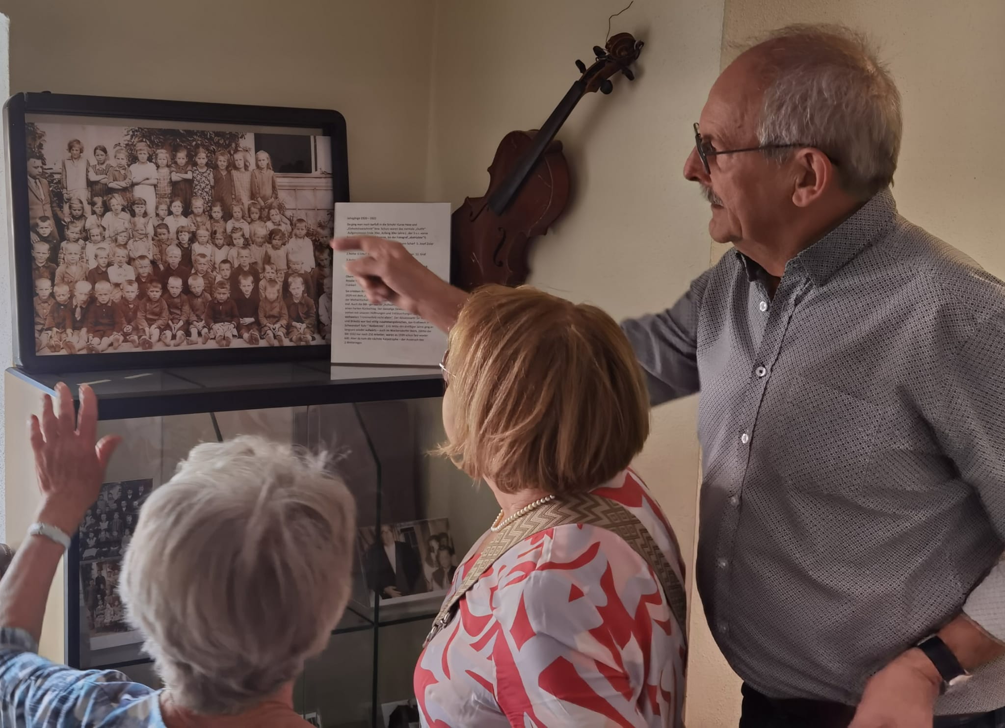 Beim anschließenden Rundgang durch die neu gestalteten Räume im Erdgeschoss erläuterte Christian Scharf den Gästen das neue Konzept, wobei im ersten Raum die BBI-Geschichte chronologisch aufgezeigt wird. In zwei Vitrinen wird hier auch die Bergmannstradition mit diversen Exponaten veranschaulicht. Der Museumsleiter lenkte die Aufmerksamkeit der Besucher auch auf einen Modell-Nachbau des Hochbunkers aus dem Jahre 1928. Bis zuletzt stand das Verlade-Bauwerk an der heutigen Industriestraße. Im zweiten Raum wird jetzt die Schulgeschichte präsentiert, denn hier wurde 1852 das erste Schulhaus eingerichtet. Eine alte Schulbank, Klassenfotos und diverse Schulutensilien erinnern hier an die Schulzeit. Im benachbarten Sakralraum waren die Gäste zu einem Sektumtrunk eingeladen. Bei angenehmen vorsommerlichen Temperaturen servierten die HAK-Damen im Museumsgarten Kaffee und Kuchen. Für den musikalischen Rahmen sorgte die siebenköpfige Gruppe „Zamgspuit“. Bei ihrem erstmaligen Auftritt im Museumsgarten heimsten die Musiker mit Dame reichlich Beifall ein.