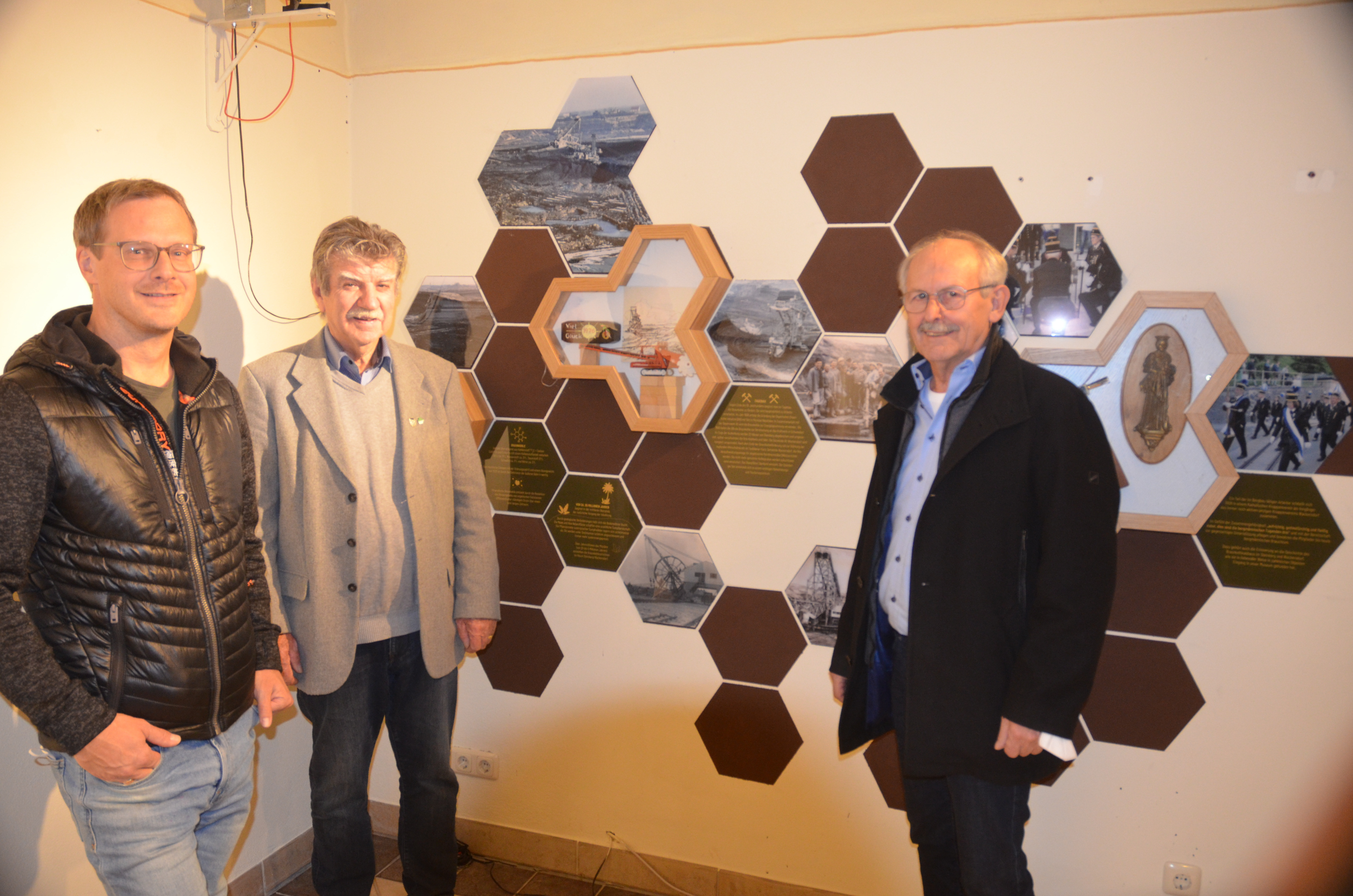 In den vergangenen Monaten haben die Mitglieder des Heimatkundlichen Arbeitskreises den Empfangsraum im Museum komplett neu gestaltet. Museumsleiter Christian Scharf bezeichnet den ersten Raum des Museums als Visitenkarte. Hier sollen die Besucher zu Beginn ihres Rundgangs auf die verschiedenen Themenbereiche eingestimmt werden. Die aufwändig gestaltete Wand im Eingangsraum „ziert" als Grundgerüst ein Atommodell der Braunkohle. Diese und ihre Geschichte sind natürlich Schwerpunktthema und die damit verbundene Technik als auch die Tradition der Bergleute. Weitere große Themen sind die Kirchen- und Schulgeschichte. In einer weiteren Vitrine wird die Heimatgeschichte, wie Handwerk und Gebrauchsgegenstände, aus früherer Zeit angekündigt. Dazugehörige Bild- und Texttafeln ergänzen das Ganze optisch neben der neuen Bestuhlung.