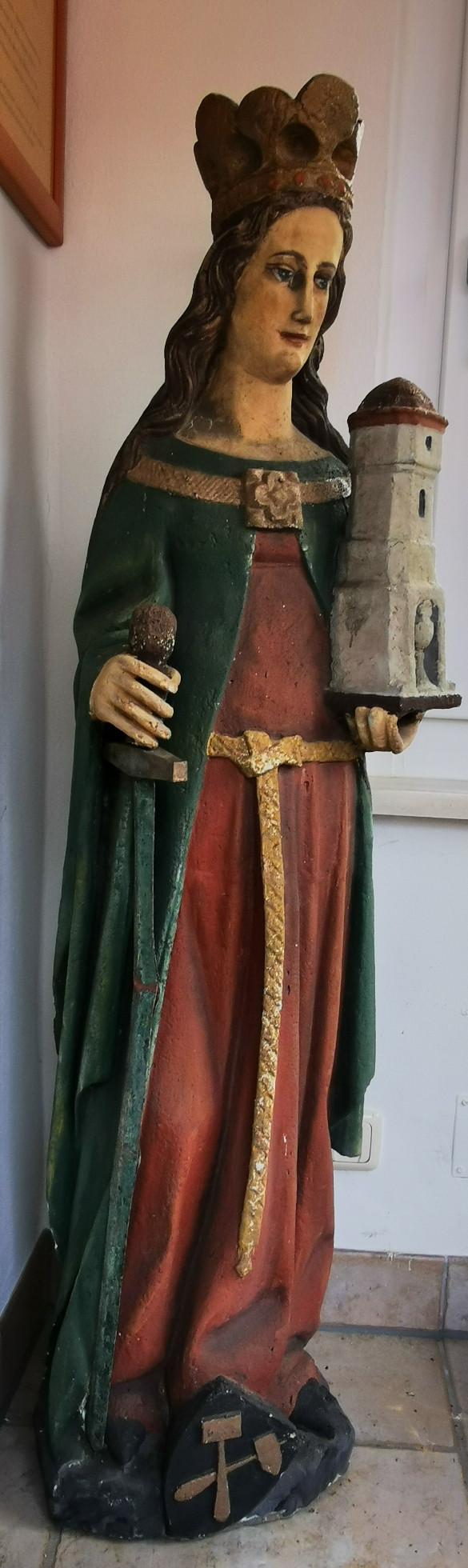 Keine leichte Aufgabe war es die Heilige Barbara ins Braunkohlemuseum zu transportieren. Hier hat sie wieder einen würdevollen Platz im Eingangsbereich gefunden.