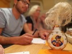 Anhand von Schnupftabakflaschen übten zahlreiche Interessierte im Braunkohle- und Heimatmuseum Steinberg unter der Anleitung von Dr. Wolfgang Neiser die Inventarisation von Exponaten.