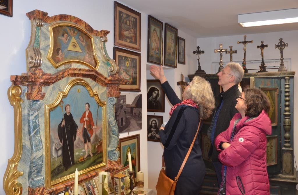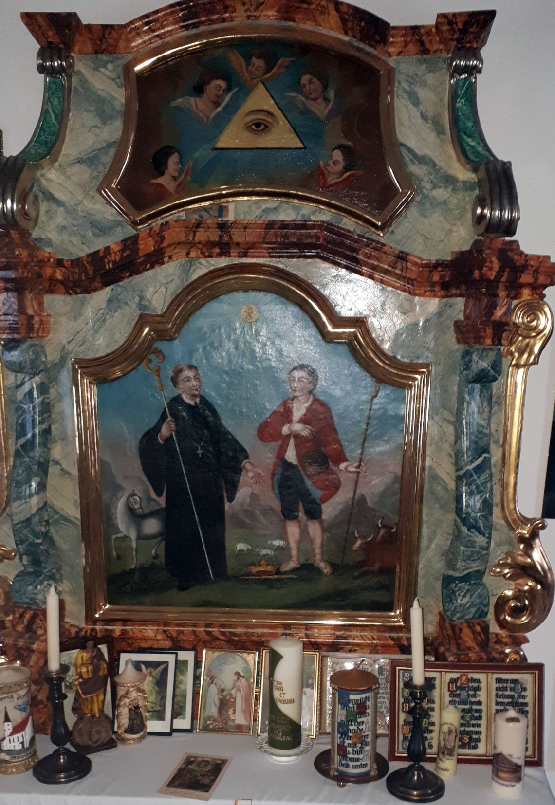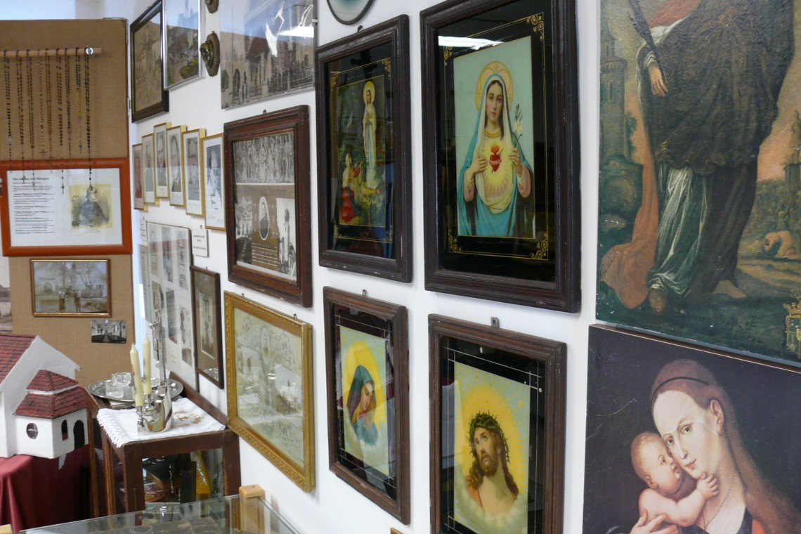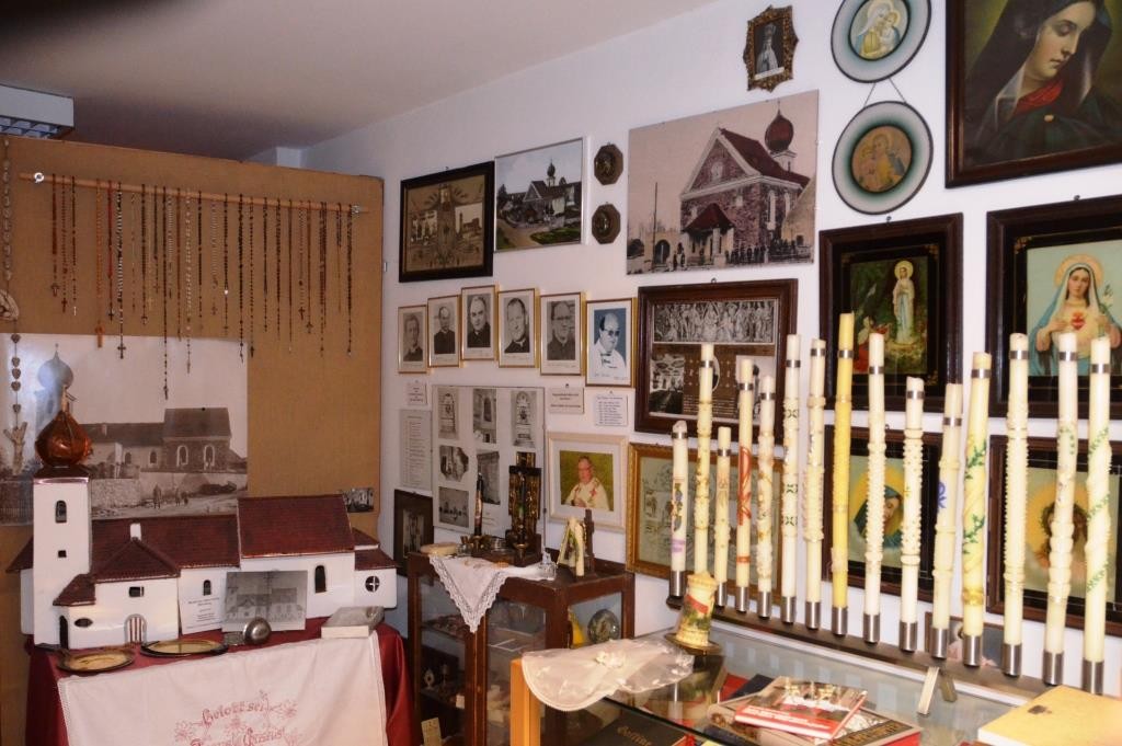 Unsere neueste „Errungenschaft“ ist der Sakralraum mit dem restaurierten Altar der Oderer Dorfkapelle. Das Altarbild zeigt die Bauernheiligen Wendelin und Bilder von Heiligen, wertvolle Gebet- und Kirchenbücher, Kreuze, Weihwasserkessel oder Rosenkränze „umrahmen“ den Mittelpunkt des Raumes. Darüber hinaus sieht man Fotos und ein Schülermodell der alten Kirche mit dem 1927 getätigten und 1969 wieder abgerissenen Anbau. Die St. Martinskirche ist heute ein moderner Rundbau (an das Pantheon in Rom erinnernd schrieb das Bistumsblatt), die „ verkleinerte alte Kirche“ ist St. Wendelin mit Epitaphen der Grafen Leoprechting und Reisach, die Steinberg in der Hofmarkszeit prägten. Mit viel Liebe und Mühe zusammengetragen wurden Steinberger Sterbebilder zwischen 1890 und jetzt. Die Sterbebilder der Gefallenen sind im OG beim Fahnenschrank des ehemaligen Krieger- und Militärvereins (jetzt SRK).